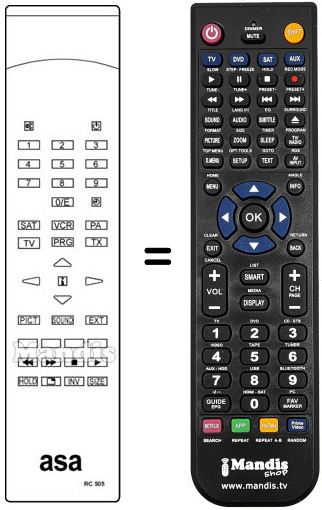 Comando à distância que substitui o original RC 505 em todas as suas funções.