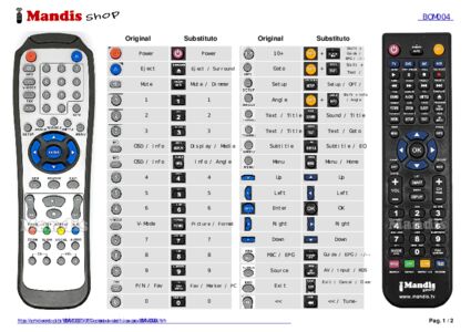 Abaixo, mostraremos a correspondência entre cada botão no controle remoto original e o botão que executa a mesma função no controle remoto de substituição. Em alguns casos, pode ser necessário pressionar a tecla SHIFT antes de pressionar outro botão para realizar determinadas ações. Essas funções adicionais geralmente não são amplamente utilizadas e são incluídas para facilitar o entendimento do controle remoto de substituição, ou porque o controle remoto original tem mais botões do que seu equivalente.