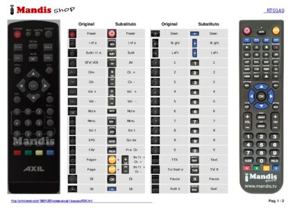 Abaixo, mostraremos a correspondência entre cada botão no controle remoto original e o botão que executa a mesma função no controle remoto de substituição. Em alguns casos, pode ser necessário pressionar a tecla SHIFT antes de pressionar outro botão para realizar determinadas ações. Essas funções adicionais geralmente não são amplamente utilizadas e são incluídas para facilitar o entendimento do controle remoto de substituição, ou porque o controle remoto original tem mais botões do que seu equivalente.
