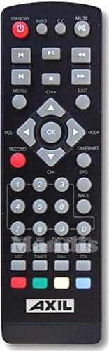 Comando à distância original RT0407HD da marca Axil. Trata-se de um modelo original de comando à distância.