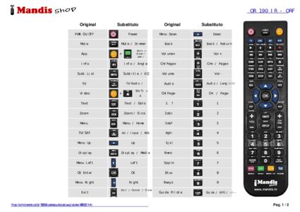 Um documento está incluso para ajudá-lo a usar o novo controle remoto facilmente, mostrando a correspondência dos botões.