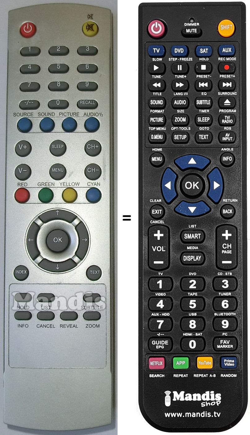 Comando à distância que substitui o original em todas as suas funções.