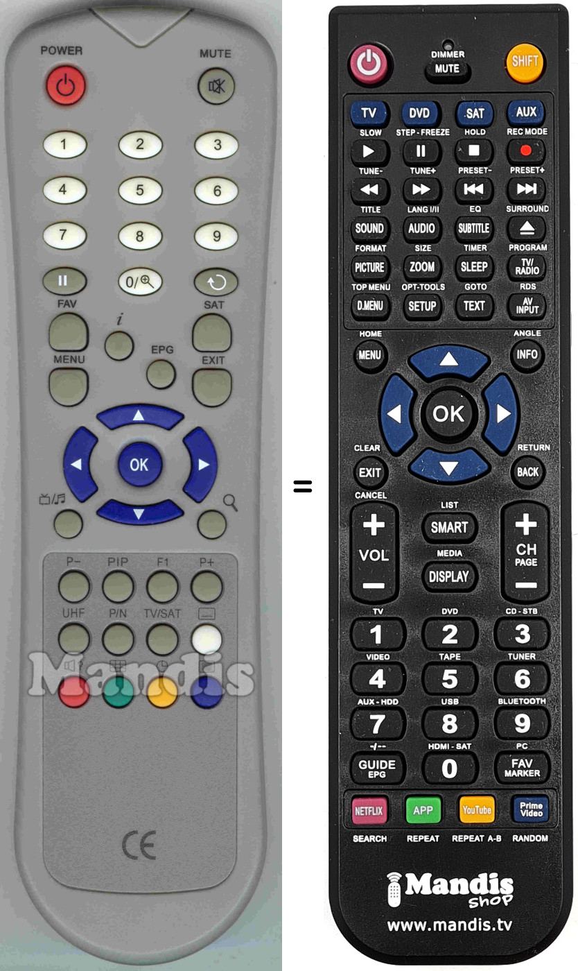 Comando à distância que substitui o original em todas as suas funções.