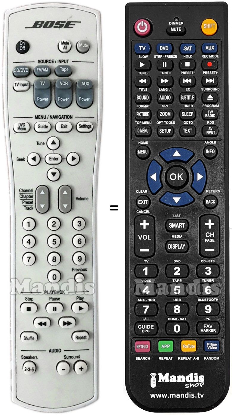 Feito isso, você poderá controlar seu sistema Bose via Mandis remoto infravermelho.