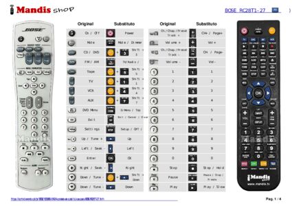 Início > Marcas > Comandos à Distância BOSE > Controle remoto para BOSE RC28T1-27