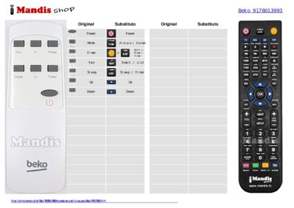 Início > Marcas de ar condicionado > Lista de comandos para ar condicionado Beko > Controle remoto para Beko 9178013993