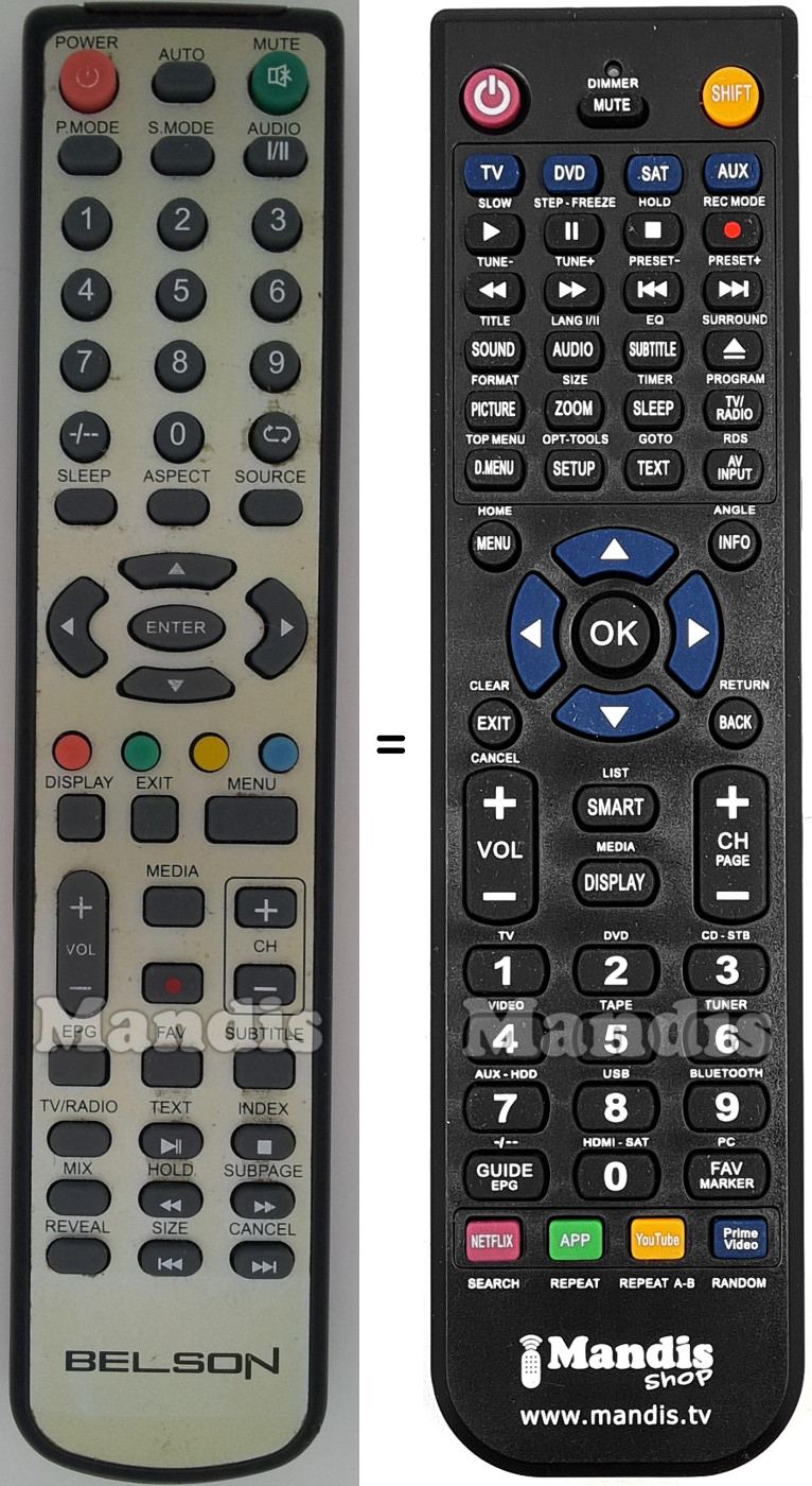 Abaixo, mostraremos a correspondência entre cada botão no controle remoto original e o botão que executa a mesma função no controle remoto de substituição. Em alguns casos, pode ser necessário pressionar a tecla SHIFT antes de pressionar outro botão para realizar determinadas ações. Essas funções adicionais geralmente não são amplamente utilizadas e são incluídas para facilitar o entendimento do controle remoto de substituição, ou porque o controle remoto original tem mais botões do que seu equivalente.