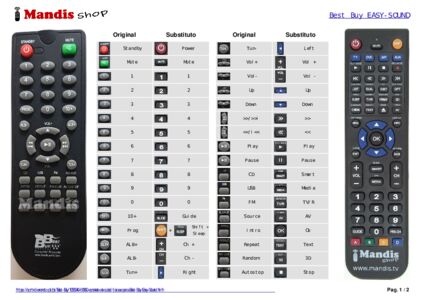 Este controle remoto executa todas as funções do controle remoto original: Standby, Mute, 1, 2, 3, 4, 5, 6, 7, 8, 9, 0, 10+, Prog, ALB -, ALB +, Up / Vol +, Down / Vol -, << / I<<, >> / >>I, Play / Pause, TUN -, TUN +, CD, USB, FM, Source, Intro, Repeat, Random, Auto / Stop, Sleep, EQ, Memory, ST / Mono