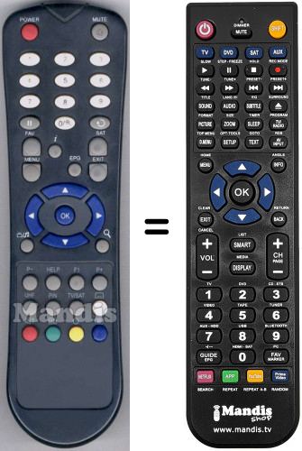 Abaixo, mostraremos a correspondência entre cada botão no controle remoto original e o botão que executa a mesma função no controle remoto de substituição. Em alguns casos, pode ser necessário pressionar a tecla SHIFT antes de pressionar outro botão para realizar determinadas ações. Essas funções adicionais geralmente não são amplamente utilizadas e são incluídas para facilitar o entendimento do controle remoto de substituição, ou porque o controle remoto original tem mais botões do que seu equivalente.
