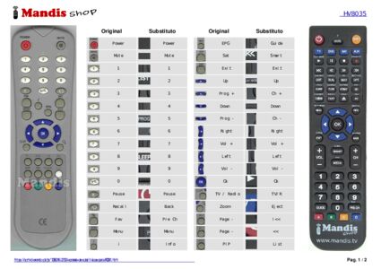 Este controle remoto executa todas as funções do controle remoto original: Power, Mute, 1, 2, 3, 4, 5, 6, 7, 8, 9, 0, Pause, Recall, Fav, i, Sat, Menu, EPG, Exit, Up, Down, Right, Left, TV / Radio, Zoom, P-, PIP, F1, P+, UHF, P/N, TV / Sat, Subtitle, Red / Audio, Green / Mosaic, Yellow / Clock, Blue / Text, OK