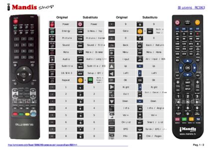 Abaixo, mostraremos a correspondência entre cada botão no controle remoto original e o botão que executa a mesma função no controle remoto de substituição. Em alguns casos, pode ser necessário pressionar a tecla SHIFT antes de pressionar outro botão para realizar determinadas ações. Essas funções adicionais geralmente não são amplamente utilizadas e são incluídas para facilitar o entendimento do controle remoto de substituição, ou porque o controle remoto original tem mais botões do que seu equivalente.