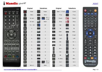 Comando à distância que substitui o original RC008 em todas as suas funções.