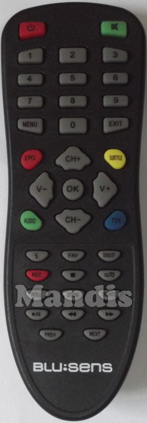Comando à distância original T.9-R-PVR-S que serve para tdt/sat da marca Blusens. Trata-se de um modelo original de comando à distância.