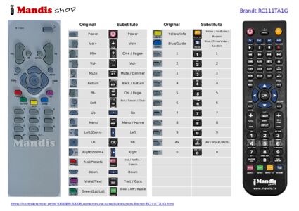 Início > Marcas > Comandos à Distância Brandt > Controle remoto para Brandt RC 111 TA 1 G