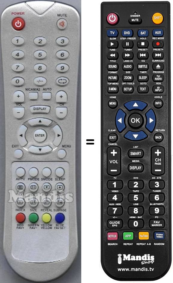Comando à distância que substitui o original RC44 em todas as suas funções.