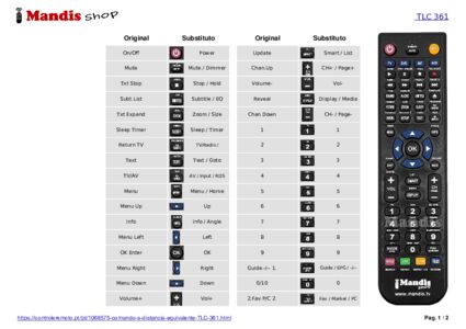 Este comando substitui completamente o seu TLC 361 e oferece todas as funções do original.