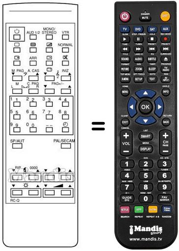 Comando à distância que substitui o original RC-Q em todas as suas funções.