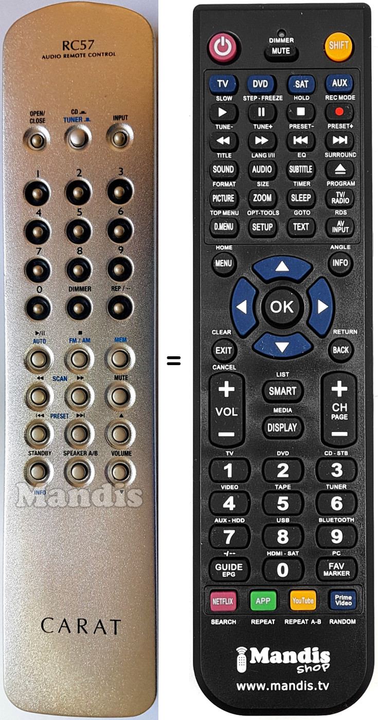 Comando à distância que substitui o original em todas as suas funções.