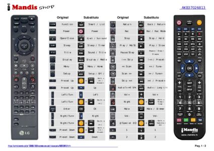 Um documento está incluso para ajudá-lo a usar o novo controle remoto facilmente, mostrando a correspondência dos botões.