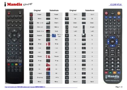 Comando à distância que substitui o original V32NFHTUV (EU1300002) em todas as suas funções.