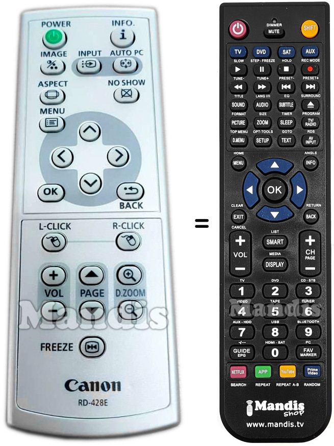 Este controle remoto substitui a maioria das funções do seu RD428E. Não é um controle remoto universal, mas sim uma cópia com a maioria dos botões e funções do seu original.