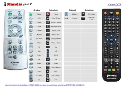 Abaixo, mostraremos a correspondência entre cada botão no controle remoto original e o botão que executa a mesma função no controle remoto de substituição. Em alguns casos, pode ser necessário pressionar a tecla SHIFT antes de pressionar outro botão para realizar determinadas ações. Essas funções adicionais geralmente não são amplamente utilizadas e são incluídas para facilitar o entendimento do controle remoto de substituição, ou porque o controle remoto original tem mais botões do que seu equivalente.