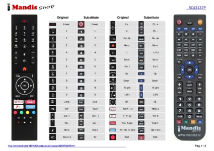 Comando à distância que substitui o original RC43137P (30101759) em todas as suas funções.
