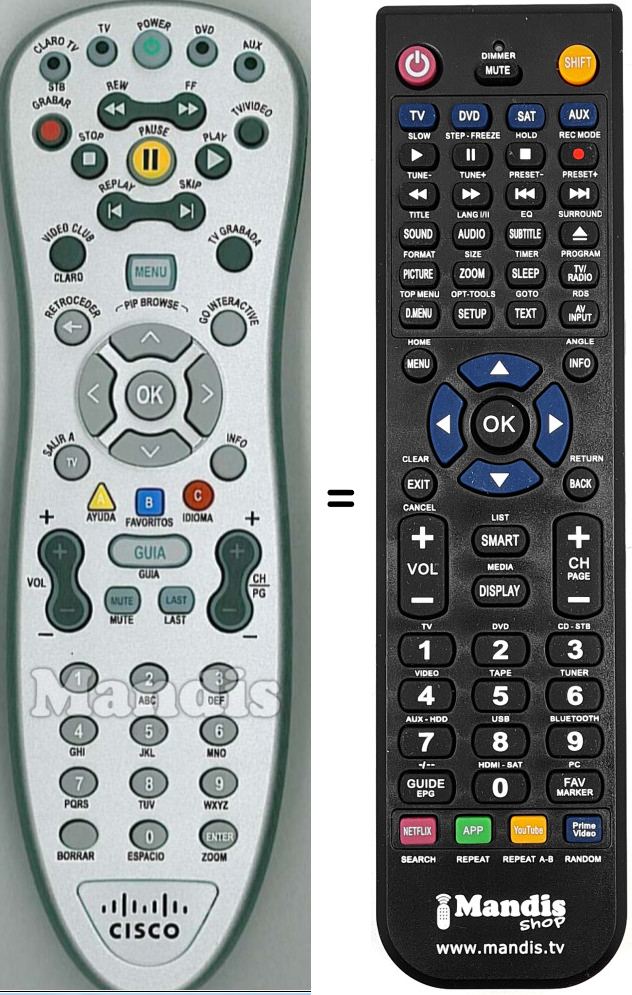 Comando à distância que substitui o original Cisco001 em todas as suas funções.