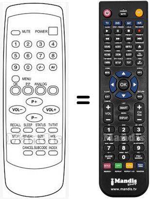 Um documento está incluso para ajudá-lo a usar o novo controle remoto facilmente, mostrando a correspondência dos botões.