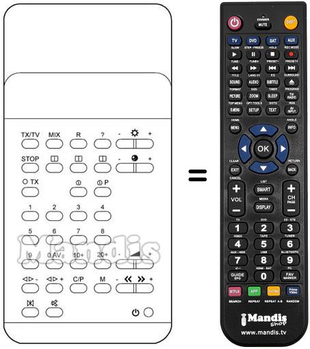 Comando à distância que substitui o original TC131 em todas as suas funções.