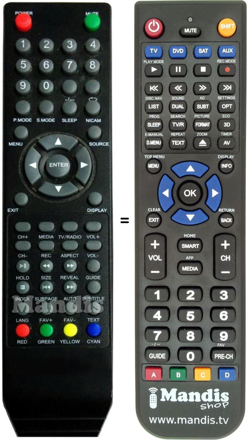 Comando à distância que substitui o original REMCON648 em todas as suas funções.