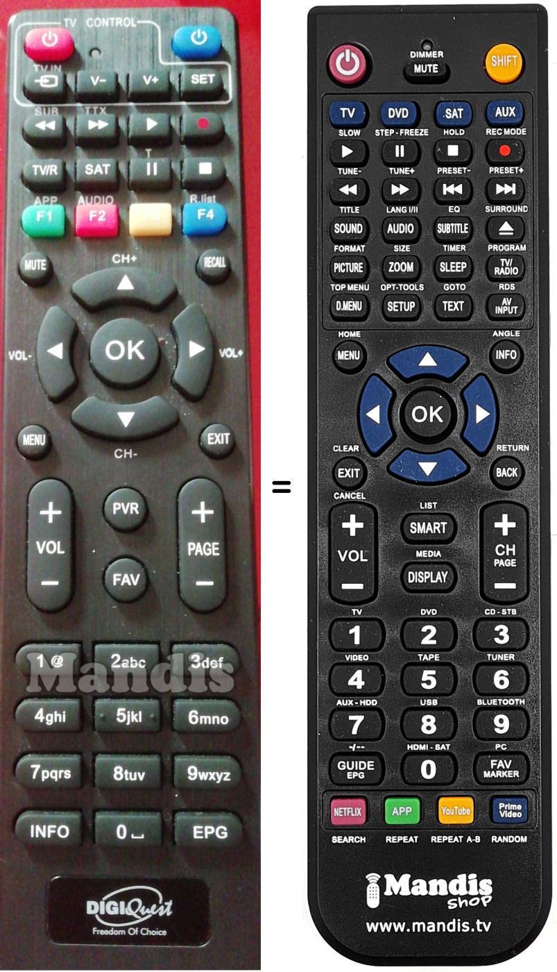 Comando à distância que substitui o original em todas as suas funções.