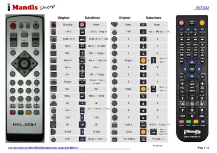 Um documento está incluso para ajudá-lo a usar o novo controle remoto facilmente, mostrando a correspondência dos botões.