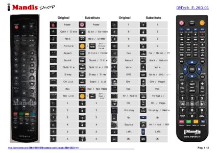 Um documento está incluso para ajudá-lo a usar o novo controle remoto facilmente, mostrando a correspondência dos botões.