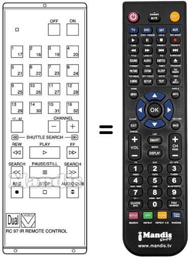 Comando à distância que substitui o original RC 97 em todas as suas funções.