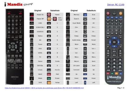 Este controle remoto executa todas as funções do controle remoto original: power off, power on, 1/BD, 2/(SAT/CBL), 3/(DOCK), status, bd, tuner, band, dvd, dock, shift, tv, game, sat/cbl, v.aux, mode, memory, search, ch+, ch-, input mode, audio delay, sleep, dimmer, mute, ch level, surround parameter, menu, return, enter, up, down, right, left, vol+, vol-, night, restorer, tone, test, <surround, >surround, down tuning, up tuning, i<<, stop, pay/pause, >>I, <<, repeat, random, >>