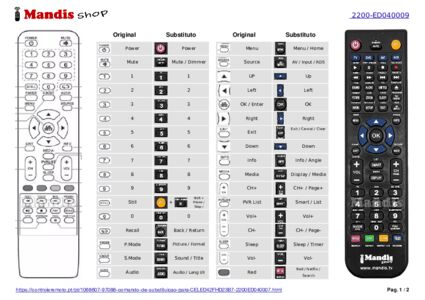 Um documento está incluso para ajudá-lo a usar o novo controle remoto facilmente, mostrando a correspondência dos botões.