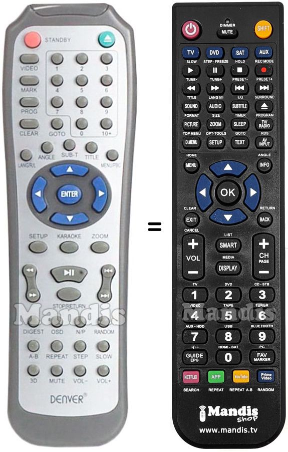 Este comando substitui completamente o seu DVD706K e oferece todas as funções do original.