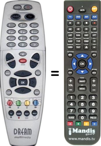 Este comando substitui completamente o seu Dream-multimedia (URC39730) e oferece todas as funções do original.
