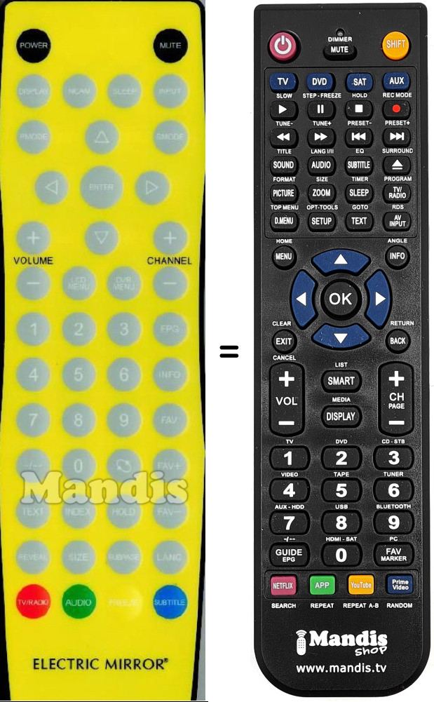 Comando à distância que substitui o original em todas as suas funções.