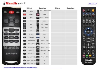 Um documento está incluso para ajudá-lo a usar o novo controle remoto facilmente, mostrando a correspondência dos botões.