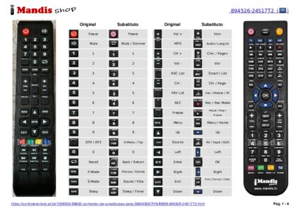 Um documento está incluso para ajudá-lo a usar o novo controle remoto facilmente, mostrando a correspondência dos botões.
