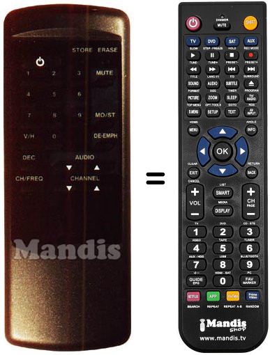 Comando à distância que substitui o original IR 70 em todas as suas funções.