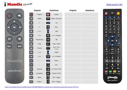 Abaixo, mostraremos a correspondência entre cada botão no controle remoto original e o botão que executa a mesma função no controle remoto de substituição. Em alguns casos, pode ser necessário pressionar a tecla SHIFT antes de pressionar outro botão para realizar determinadas ações. Essas funções adicionais geralmente não são amplamente utilizadas e são incluídas para facilitar o entendimento do controle remoto de substituição, ou porque o controle remoto original tem mais botões do que seu equivalente.