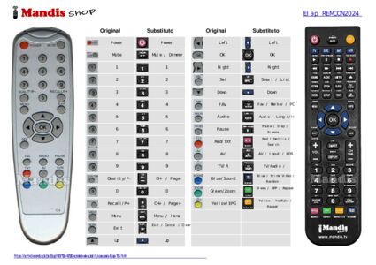 Abaixo, mostraremos a correspondência entre cada botão no controle remoto original e o botão que executa a mesma função no controle remoto de substituição. Em alguns casos, pode ser necessário pressionar a tecla SHIFT antes de pressionar outro botão para realizar determinadas ações. Essas funções adicionais geralmente não são amplamente utilizadas e são incluídas para facilitar o entendimento do controle remoto de substituição, ou porque o controle remoto original tem mais botões do que seu equivalente.