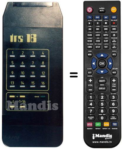 Comando à distância que substitui o original TRS 16 PROG em todas as suas funções.