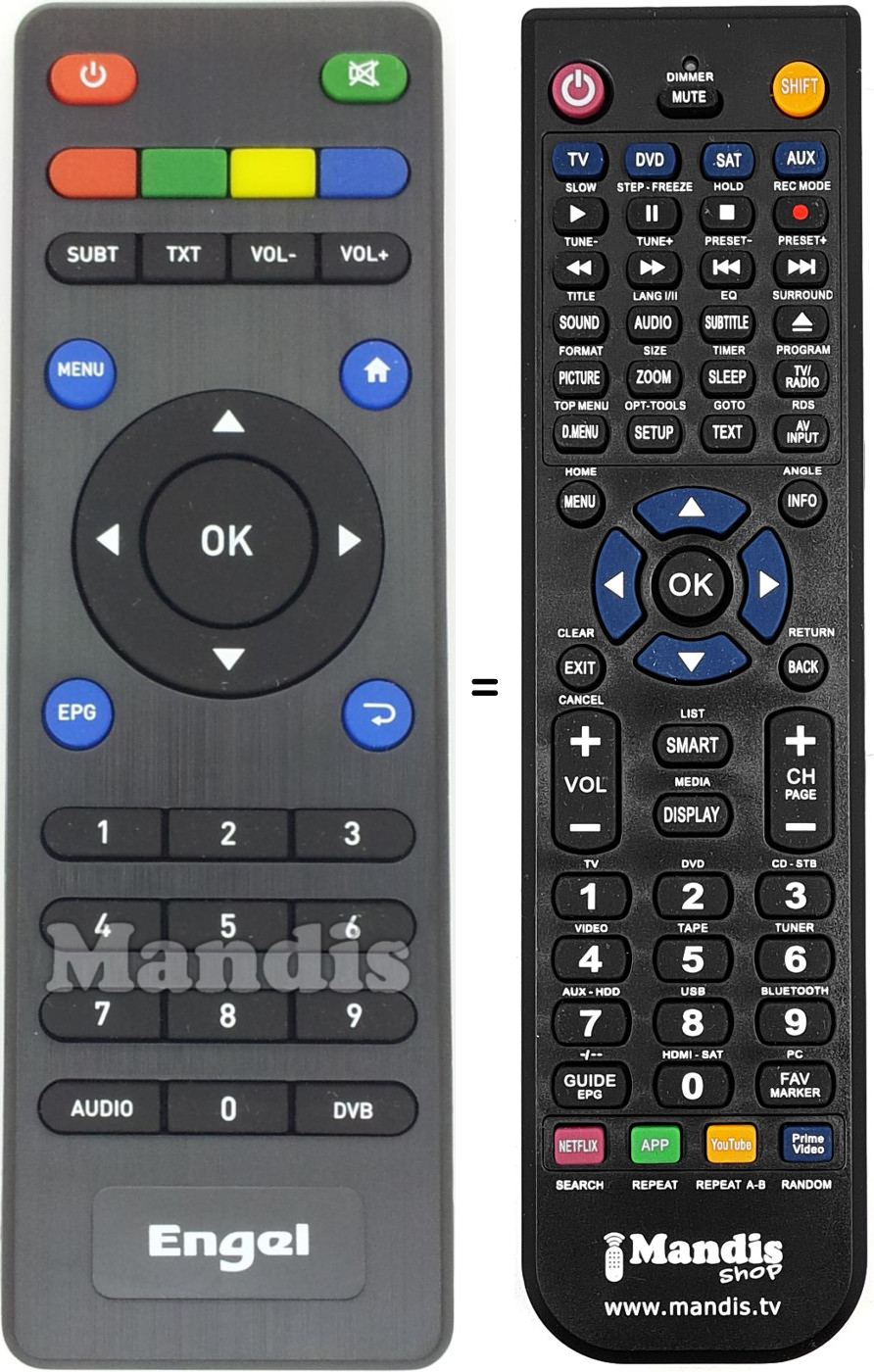 Power, Mute, Red, Green, Yellow, Blue, Subt, TXT, Vol-, Vol+, Menu, Home, EPG, Back, Up, Down, Right, Left, OK, 1, 2, 3, 4, 5, 6, 7, 8, 9, 0, Audio, DVB