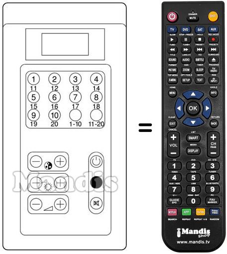 Comando à distância que substitui o original RC 4-J em todas as suas funções.