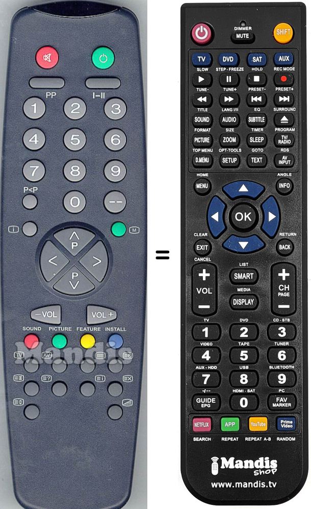 Comando à distância que substitui o original 00020058 em todas as suas funções.