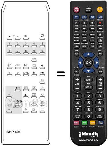 Comando à distância que substitui o original SHP 401 em todas as suas funções.